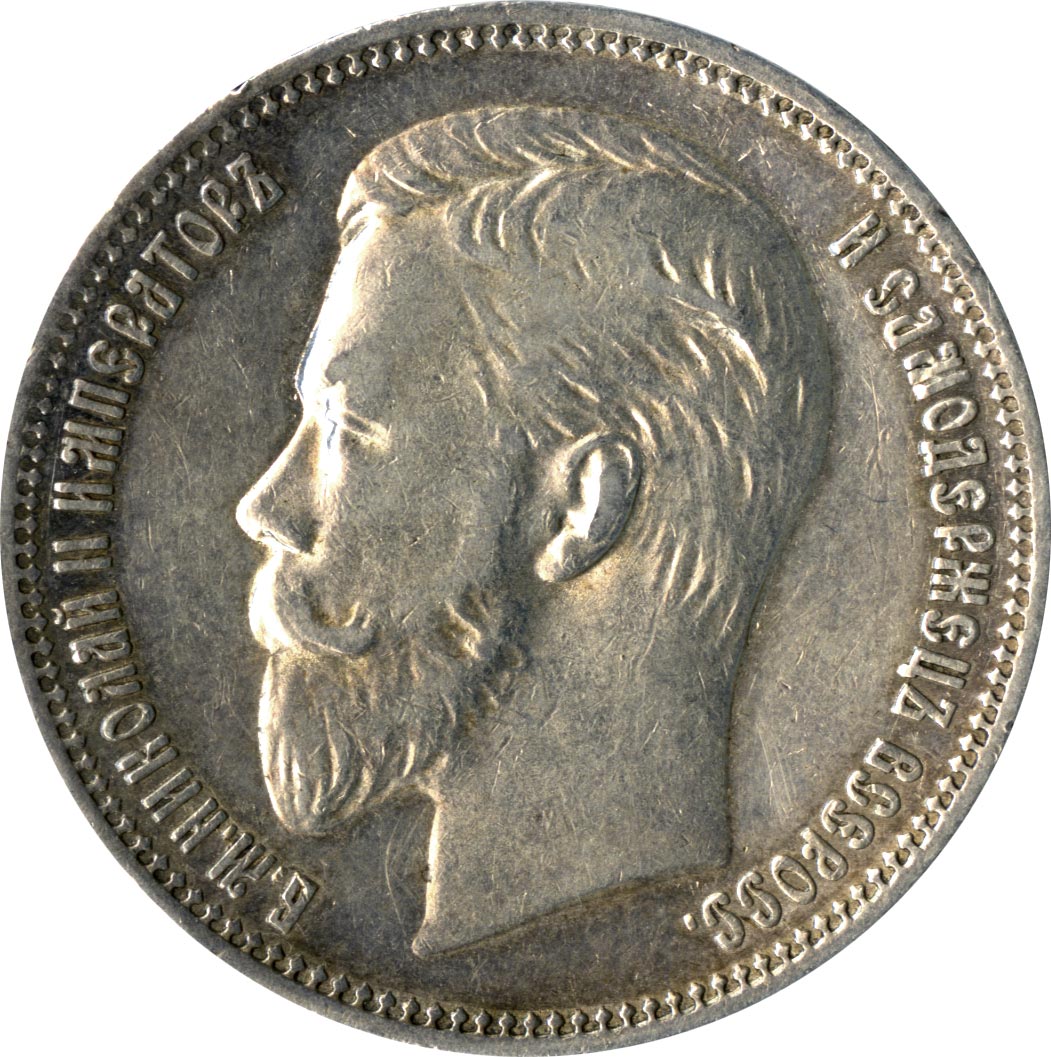 Николай II сохраняет принятый отцом тип, но на банковских монетах его портрет (работы Васютинского) повернут влево (на запад). На оборотной стороне сохраняется тот же герб, вплоть до знака АГ под задней ногой коня.