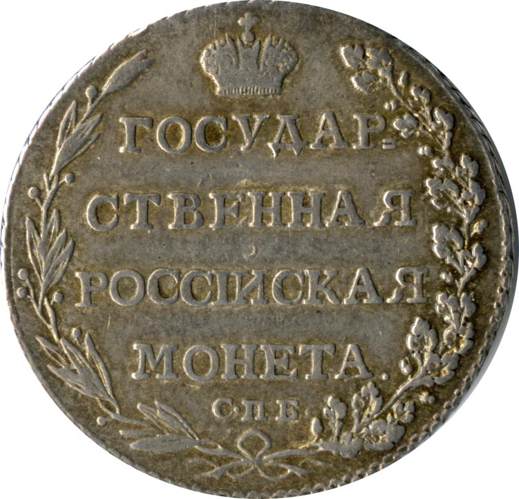 В первые годы правления Александра I серебряные монеты печатаются по прежней норме на Банковском дворе. После многочисленных проб нового оформления (в том числе с портретом в стиле римских императоров) указом от 31 августа 1801 года на их лицевую сторону помещается гербовый орел в кольце, а на оборотную — окруженная венком из лавровой и дубовой ветвей надпись «ГОСУДАРСТВЕННАЯ РОССIЙСКАЯ МОНЕТА».