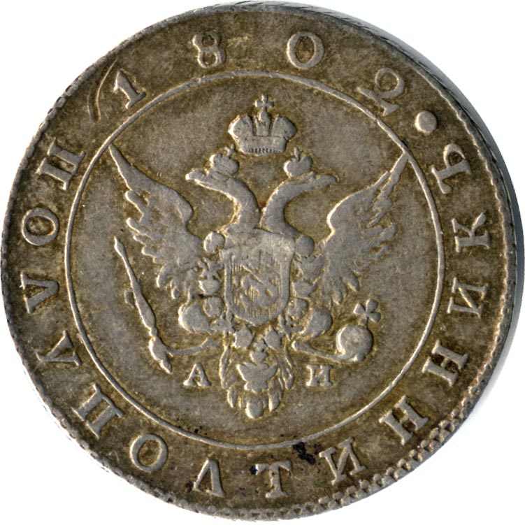 Полуполтинник 1802-1805 годов «Орел в кольце»