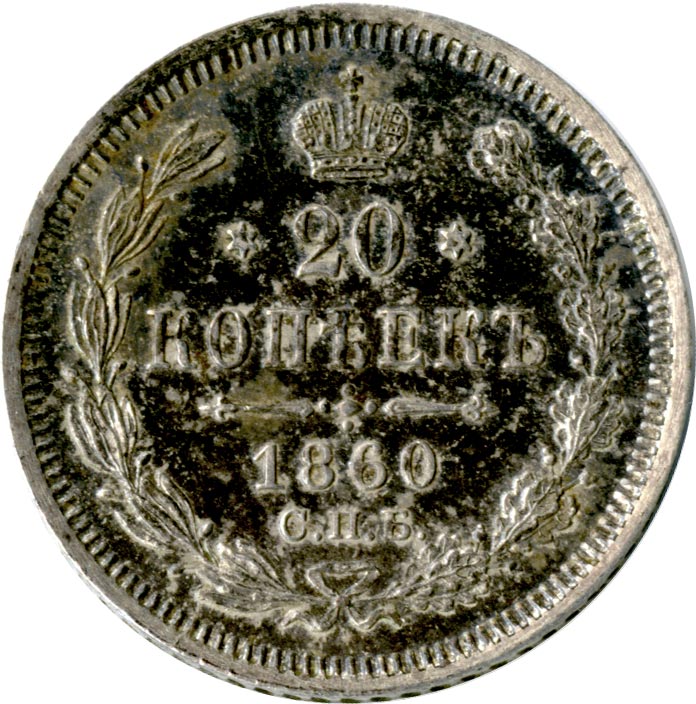 Указом от 22 марта 1860 года для двадцатикопеечников, пятнадцатикопеечников, десятикопеечников и пятикопеечников содержание серебра снижается на 15% и устанавливается 72/96 проба, а указом от 21 марта 1867 года следует снижение еще более чем в полтора раза — нормативный вес уменьшается на 10%, а проба падает до 48/96. Последняя норма сохраняется для разменной монеты вплоть до 1917 года.