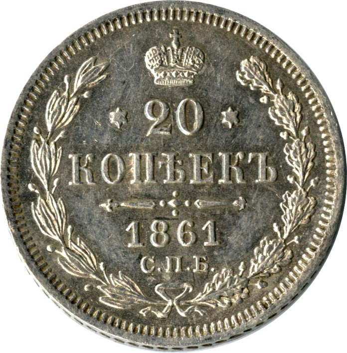 В 1861 году из-за перегруженности Петербургского двора заказы на чеканку части 20, 15 и 10 копеек размещаются на Парижском и Страсбургском монетных дворах. На этих монетах тот же знак двора СПБ, но отсутствует знак минцмейстера.