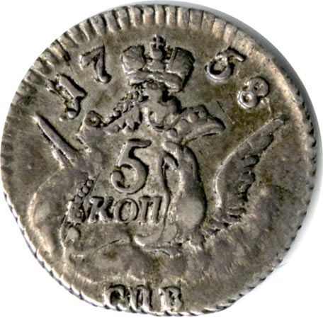 5 копеек 1755-1761 годов «Облачный пятак»