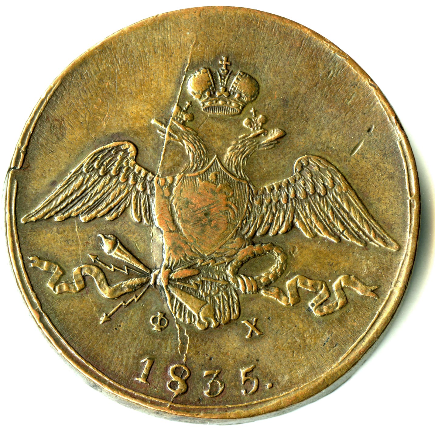 На новой серии медных монет оформление герба как на золотых (с 1817 года) и серебряных (с 1826 года), хотя еще в 1830 году было указано сделать для них орла как на платиновых. Таким образом, вышедшие в 1832 году в обращение новые медные монеты изначально имеют устаревшее оформление, а золотые и серебряные с этого же 1832 года — новое.