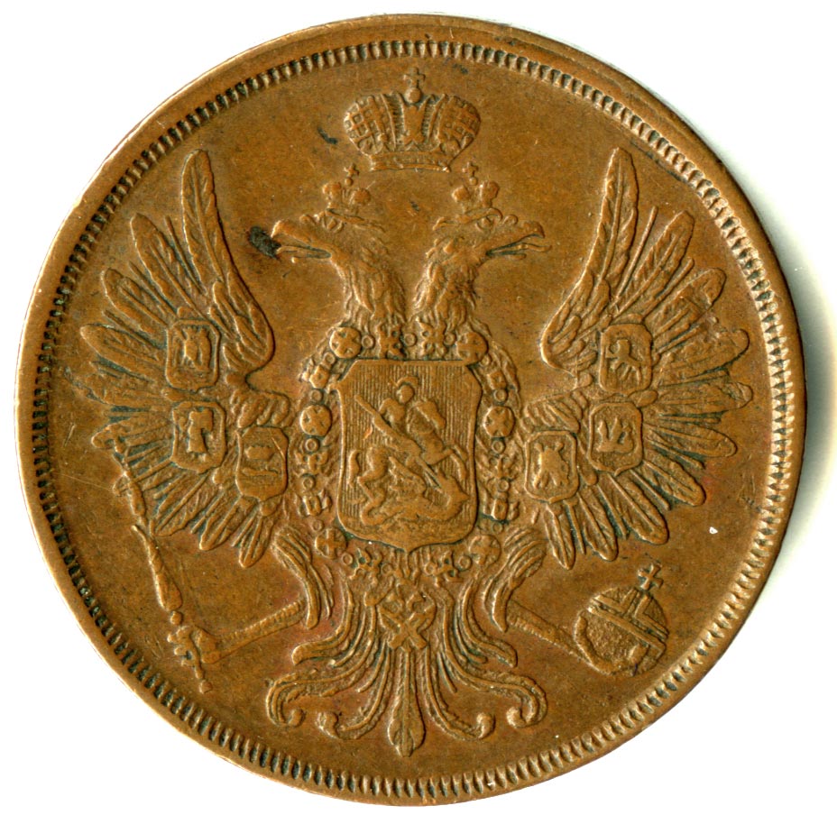 Меры правительства по стабилизации денежного обращения дали свои результаты, и указом от 7 февраля 1849 года следует очередное удвоение монетной стопы до 32 рублей из пуда. Новую монету решено делать улучшенного оформления и повышенного качества изготовления. На лицевую сторону возвращается государственный герб, а все производство ведется только на Екатеринбургском дворе (знак ЕМ), который после 1844 года усиленно перестраивается и переоснащается по образцу Петербургского. С 1850 года к нему подключается Варшавский (знак ВМ), получивший специальное разрешение на выпуск общегосударственной медной монеты. Штемпельный инструмент для обоих дворов готовит Петербургский двор. Новые монеты поступают в обращение только после указа от 23 января 1853 года, после приготовления на общую сумму 870 720 рублей (без учета Варшавской чеканки).