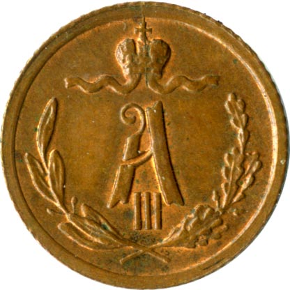 Указом от 21 марта 1867 года Александр II утверждает 50-рублевую стопу для медных монет. Новые монеты получают усложненное оформление, дополнительным отличием от прежних выпусков служит рубчатый гурт (чеканка ведется без предварительного гурчения кружков в неразъемном рубчатом кольце).
