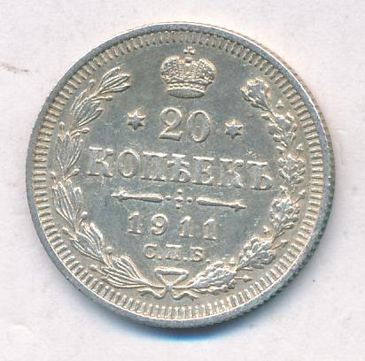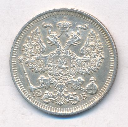 Лицевая сторона — гербовый орел, оборотная —обозначение номинала (20 копеекъ), окруженное венком из лавровой и дубовой ветвей и дата.
