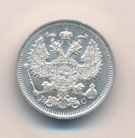 Лицевая сторона — гербовый орел, оборотная —обозначение номинала (20 копеекъ), окруженное венком из лавровой и дубовой ветвей и дата.