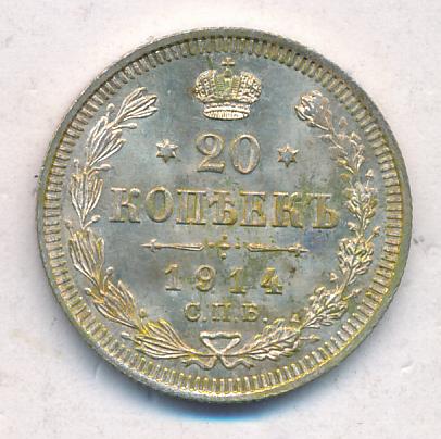 Лицевая сторона — гербовый орел, оборотная —обозначение номинала (20 копеекъ), окруженное венком из лавровой и дубовой ветвей и дата.
