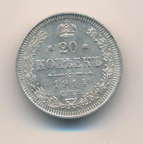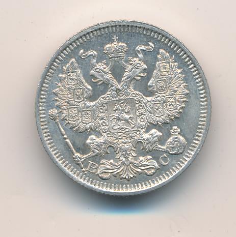 Лицевая сторона — гербовый орел, оборотная —обозначение номинала (20 копеекъ), окруженное венком из лавровой и дубовой ветвей и дата.