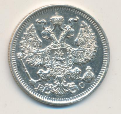Лицевая сторона — гербовый орел, оборотная —обозначение номинала (20 копеекъ), окруженное венком из лавровой и дубовой ветвей и дата.