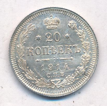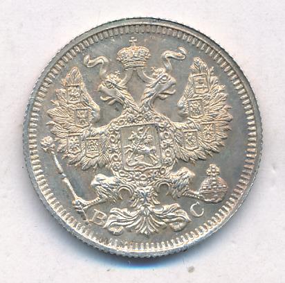 Лицевая сторона — гербовый орел, оборотная —обозначение номинала (20 копеекъ), окруженное венком из лавровой и дубовой ветвей и дата.