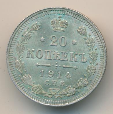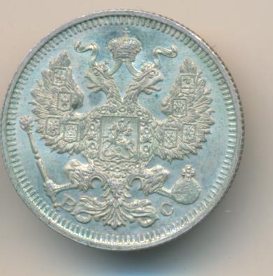 Лицевая сторона — гербовый орел, оборотная —обозначение номинала (20 копеекъ), окруженное венком из лавровой и дубовой ветвей и дата.