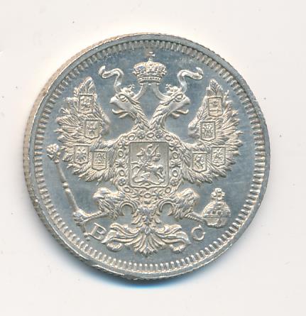 Лицевая сторона — гербовый орел, оборотная —обозначение номинала (20 копеекъ), окруженное венком из лавровой и дубовой ветвей и дата.