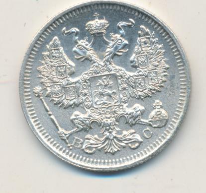 Лицевая сторона — гербовый орел, оборотная —обозначение номинала (20 копеекъ), окруженное венком из лавровой и дубовой ветвей и дата.