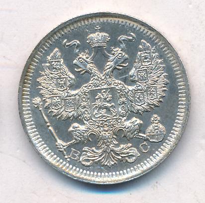 Лицевая сторона — гербовый орел, оборотная —обозначение номинала (20 копеекъ), окруженное венком из лавровой и дубовой ветвей и дата.