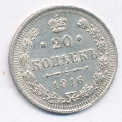 Лицевая сторона — гербовый орел, оборотная —обозначение номинала (20 копеекъ), окруженное венком из лавровой и дубовой ветвей и дата.