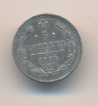 Лицевая сторона — гербовый орел, оборотная —обозначение номинала (5 копеекъ), окруженное венком из лавровой и дубовой ветвей и дата.