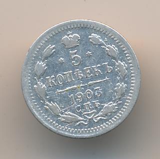 Лицевая сторона — гербовый орел, оборотная —обозначение номинала (5 копеекъ), окруженное венком из лавровой и дубовой ветвей и дата.