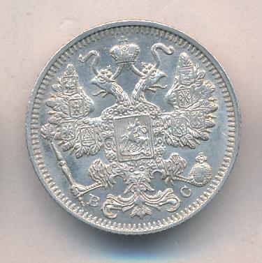 Лицевая сторона — гербовый орел, оборотная —обозначение номинала (15 копеекъ), окруженное венком из лавровой и дубовой ветвей и дата.