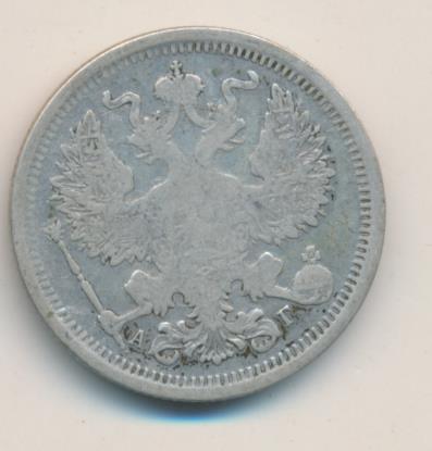 Лицевая сторона — гербовый орел, оборотная —обозначение номинала (20 копеекъ), окруженное венком из лавровой и дубовой ветвей и дата.