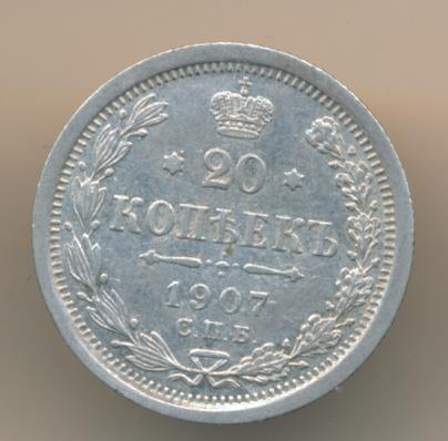 Лицевая сторона — гербовый орел, оборотная —обозначение номинала (20 копеекъ), окруженное венком из лавровой и дубовой ветвей и дата.
