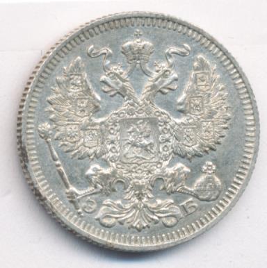 Лицевая сторона — гербовый орел, оборотная —обозначение номинала (20 копеекъ), окруженное венком из лавровой и дубовой ветвей и дата.