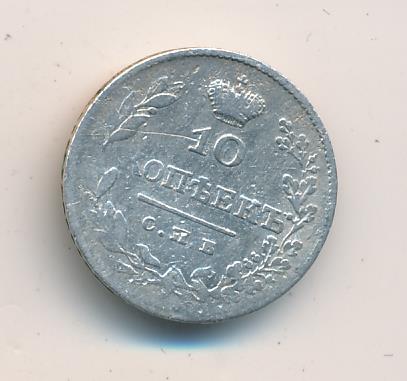 Лицевая сторона - «масонский орел» и дата, оборотная - окруженное венком из лавровой и дубовой обозначение номинала (10 копеекъ). Проба — 868, нормативный вес — 2,07 грамма.