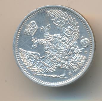Лицевая сторона — новый гербовый орел с поднятыми крыльями, оборотная —обозначение номинала (10 копеекъ), окруженное венком из лавровой и дубовой ветвей и дата. Проба — 868, нормативный вес — 2,07 грамма.