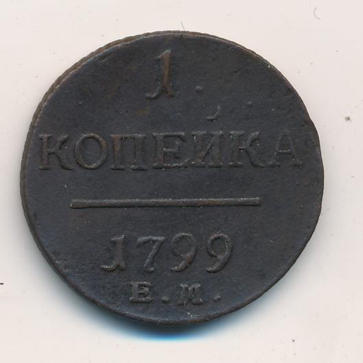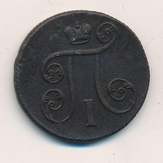 Лицевая сторона — вензель Павла I под короной, оборотная — номинал (1 копейка) и дата. Нормативный вес — 10,24 грамма, гурт — шнур.