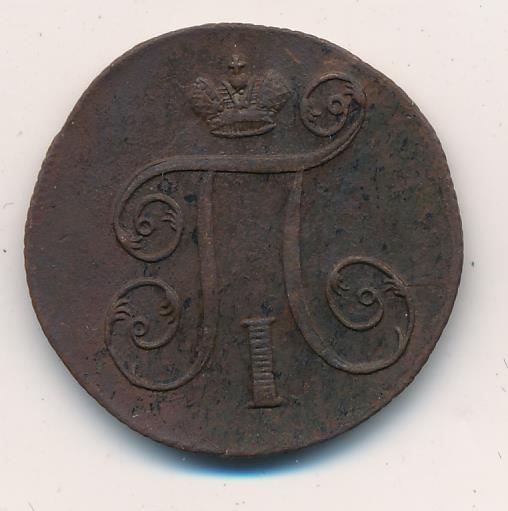 Лицевая сторона — вензель Павла I под короной, оборотная — номинал (1 копейка) и дата. Нормативный вес — 10,24 грамма, гурт — шнур.