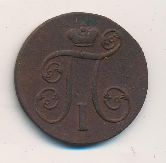 Лицевая сторона — вензель Павла I под короной, оборотная — номинал (1 копейка) и дата. Нормативный вес — 10,24 грамма, гурт — шнур.