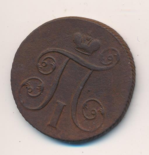 Лицевая сторона — вензель Павла I под короной, оборотная — номинал (1 копейка) и дата. Нормативный вес — 10,24 грамма, гурт — шнур.