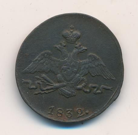 На новой серии медных монет оформление герба как на золотых (с 1817 года) и серебряных (с 1826 года), хотя еще в 1830 году было указано сделать для них орла как на платиновых. Таким образом, вышедшие в 1832 году в обращение новые медные монеты изначально имеют устаревшее оформление, а золотые и серебряные с этого же 1832 года — новое.