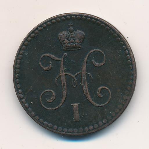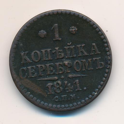 Лицевая сторона — вензель Николая I в бусовом ободке, оборотная — надпись «1 КОПЕЙКА СЕРЕБРОМ» и дата. Нормативный вес — 10,24 грамма, гурт гладкий.