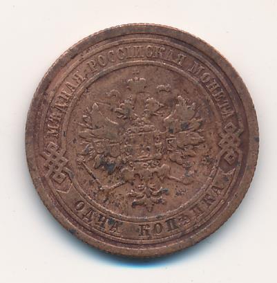 Лицевая сторона — двуглавый орел, надпись МЕДНАЯ РОССIЙСКАЯ МОНЕТА и обозначение номинала (одна копейка); оборотная — обозначение номинала (1 копейка) в бусовом ободке и дата. Нормативный вес — 3,28 грамма, гурт рубчатый.