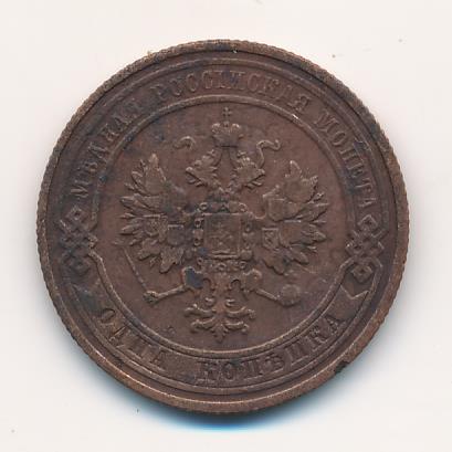 Лицевая сторона — двуглавый орел, надпись МЕДНАЯ РОССIЙСКАЯ МОНЕТА и обозначение номинала (одна копейка); оборотная — обозначение номинала (1 копейка) в бусовом ободке и дата. Нормативный вес — 3,28 грамма, гурт рубчатый.