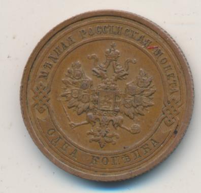 Лицевая сторона — двуглавый орел, надпись МЕДНАЯ РОССIЙСКАЯ МОНЕТА и обозначение номинала (одна копейка); оборотная — обозначение номинала (1 копейка) в бусовом ободке и дата. Нормативный вес — 3,28 грамма, гурт рубчатый.