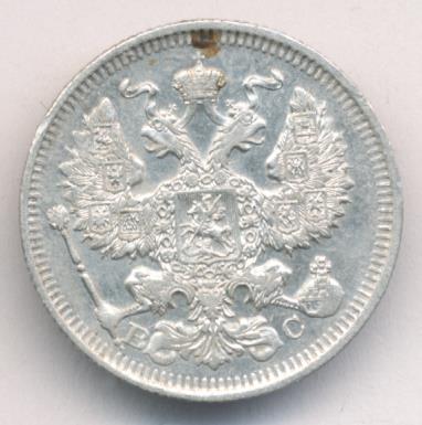 Лицевая сторона — гербовый орел, оборотная —обозначение номинала (20 копеекъ), окруженное венком из лавровой и дубовой ветвей и дата.