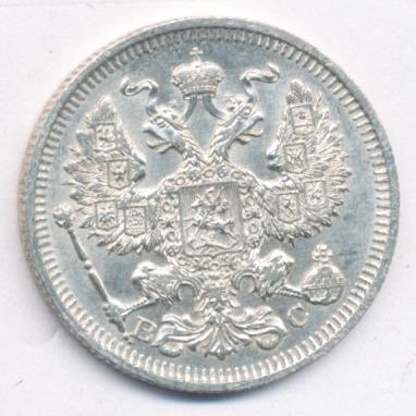 Лицевая сторона — гербовый орел, оборотная —обозначение номинала (20 копеекъ), окруженное венком из лавровой и дубовой ветвей и дата.