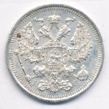 Лицевая сторона — гербовый орел, оборотная —обозначение номинала (20 копеекъ), окруженное венком из лавровой и дубовой ветвей и дата.