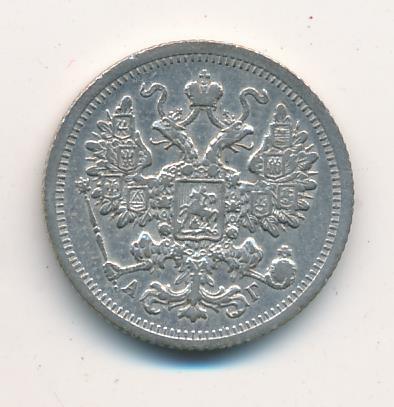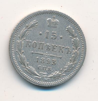 Лицевая сторона — гербовый орел, оборотная —обозначение номинала (15 копеекъ), окруженное венком из лавровой и дубовой ветвей и дата.