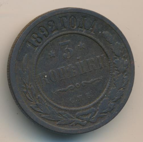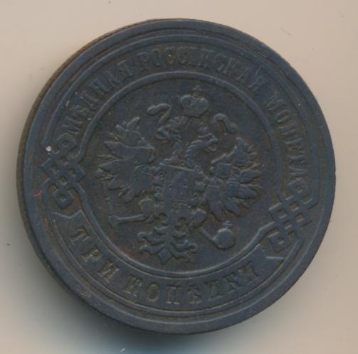 Лицевая сторона — двуглавый орел, надпись МЕДНАЯ РОССIЙСКАЯ МОНЕТА и обозначение номинала (три копейки); оборотная — обозначение номинала (3 копейки) в бусовом ободке и дата. Нормативный вес — 9,83 грамма, гурт рубчатый.