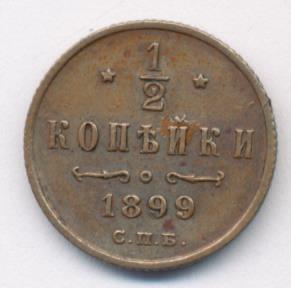 Лицевая сторона — вензель Александра II в венке из лавровой и дубовой ветвей; оборотная — обозначение номинала (1/2 копейки) и дата. Нормативный вес — 1,64 грамма, гурт рубчатый.