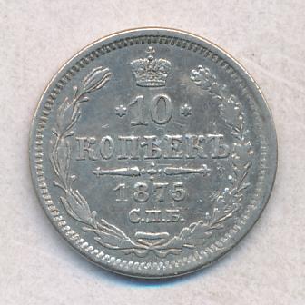 Лицевая сторона — гербовый орел, оборотная —обозначение номинала (10 копеекъ), окруженное венком из лавровой и дубовой ветвей и дата.