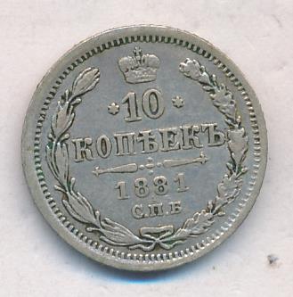 Лицевая сторона — гербовый орел, оборотная —обозначение номинала (10 копеекъ), окруженное венком из лавровой и дубовой ветвей и дата.