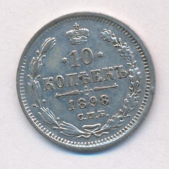 Лицевая сторона — гербовый орел, оборотная —обозначение номинала (10 копеекъ), окруженное венком из лавровой и дубовой ветвей и дата.