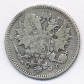 Лицевая сторона — российский двуглавый орел с гербом Великого княжества Финляндского на груди, оборотная — номинал и дата в венке из дубовых листьев. Проба — 750, нормативный вес — 1,27 грамма, гурт рубчатый.