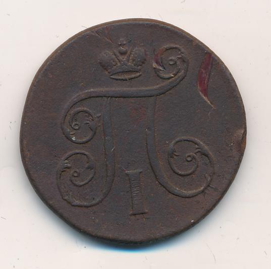 Лицевая сторона — вензель Павла I под короной, оборотная — номинал (1 копейка) и дата. Нормативный вес — 10,24 грамма, гурт — шнур.