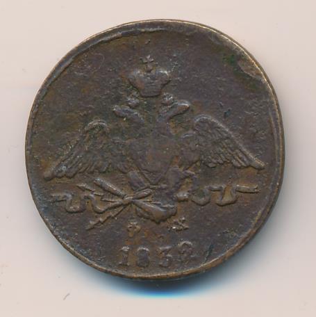 На новой серии медных монет оформление герба как на золотых (с 1817 года) и серебряных (с 1826 года), хотя еще в 1830 году было указано сделать для них орла как на платиновых. Таким образом, вышедшие в 1832 году в обращение новые медные монеты изначально имеют устаревшее оформление, а золотые и серебряные с этого же 1832 года — новое.