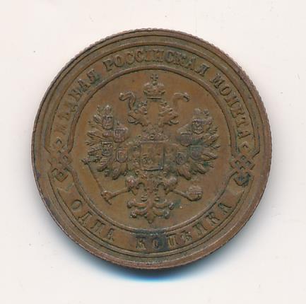 Лицевая сторона — двуглавый орел, надпись МЕДНАЯ РОССIЙСКАЯ МОНЕТА и обозначение номинала (одна копейка); оборотная — обозначение номинала (1 копейка) в бусовом ободке и дата. Нормативный вес — 3,28 грамма, гурт рубчатый.